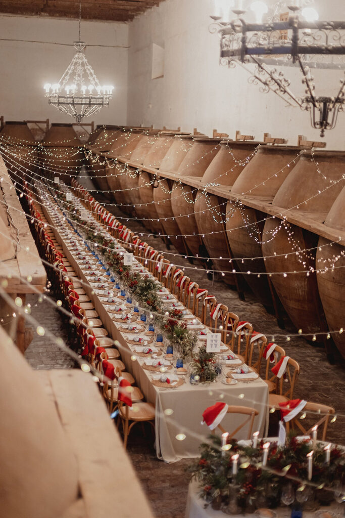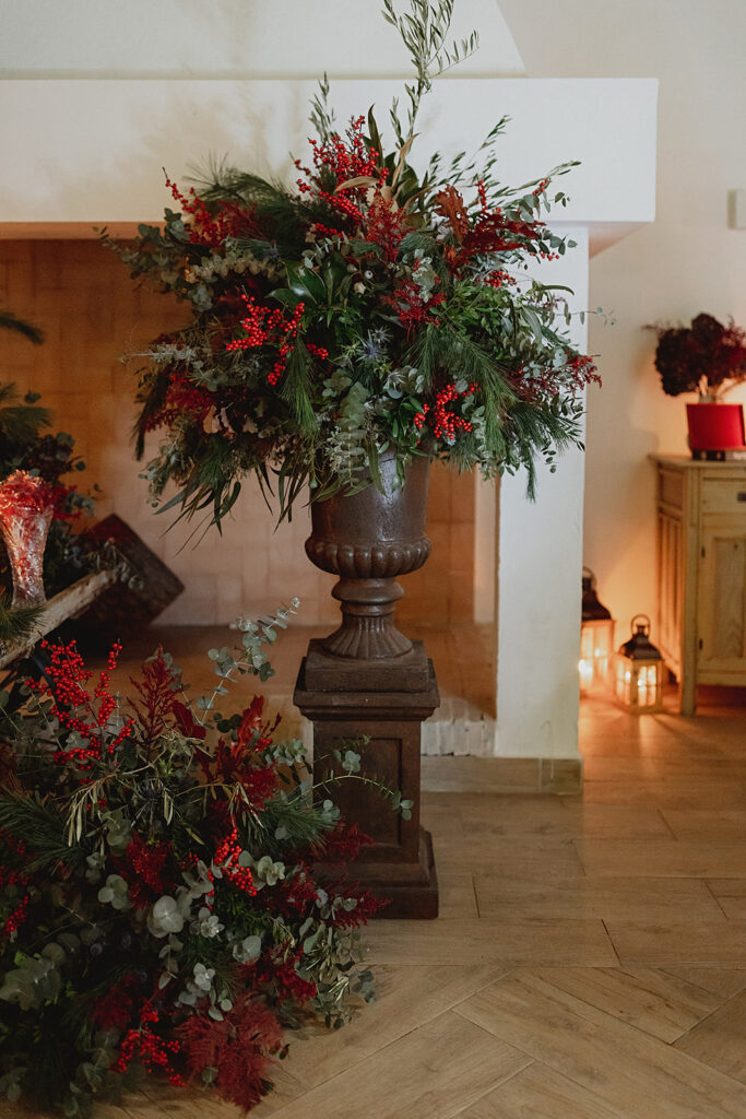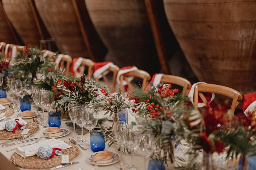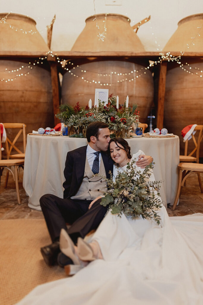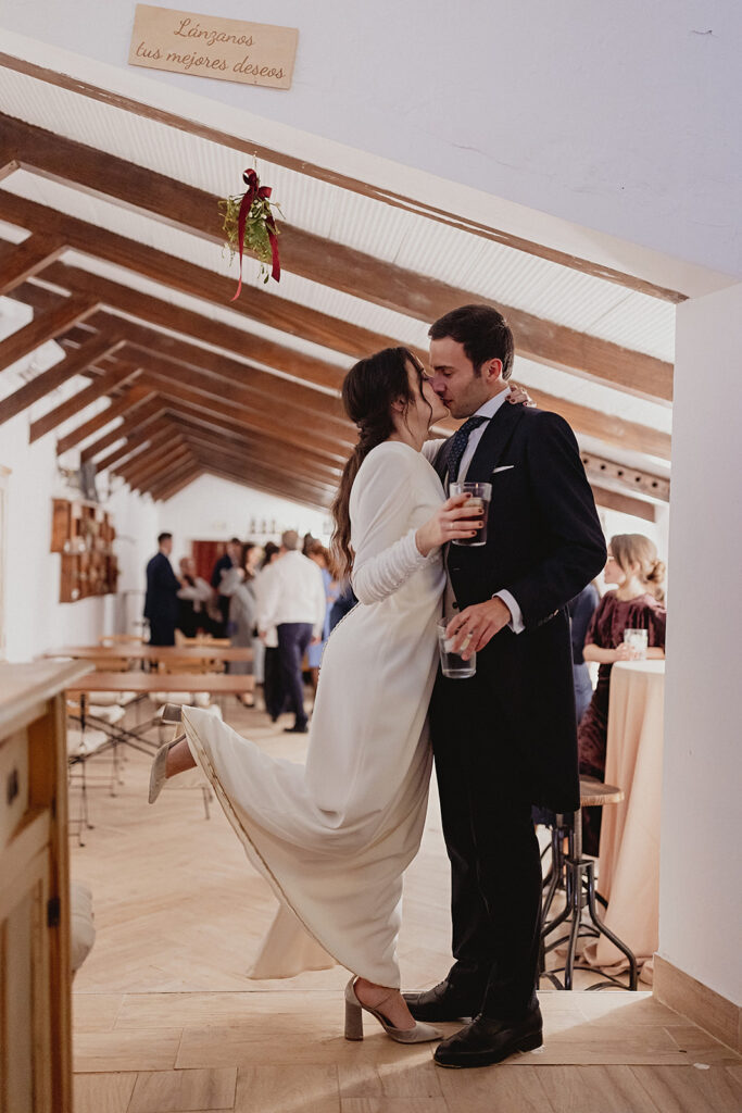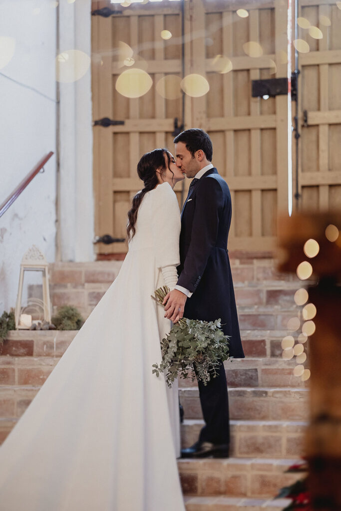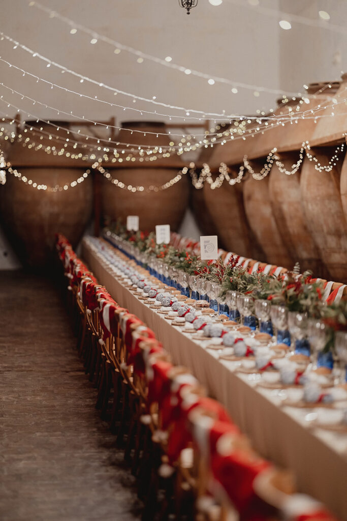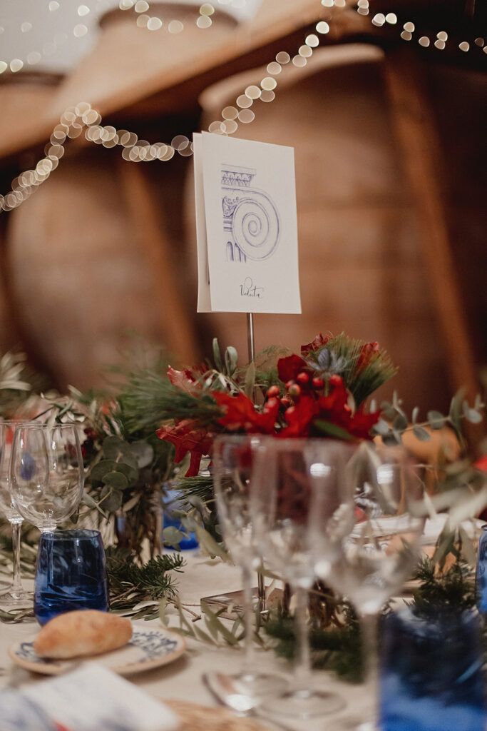 Javier e Isabel siempre habían soñado con una boda con temática navideña. Prepararon toda clase de detalles para su día B, empezando por decorar el árbol que preside nuestro zaguán en este tiempo mágico. La boda en Hacienda la Membrilleja de esta pareja sólo se puede imaginar a ritmo de canciones navideñas, cerca de una chimenea y con un beso bajo el muérdago. Isabel y Javier utilizaron casi todos los espacios cubiertos de nuestra finca. Aquí podéis ver otra disposición, en la que se utilizaron todos los espacios al aire libre, en la boda de Jess + Joseca.
