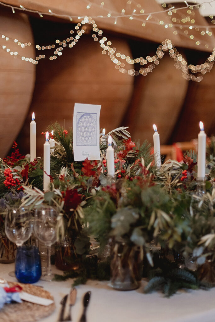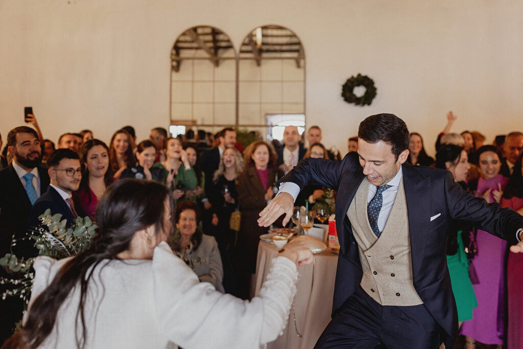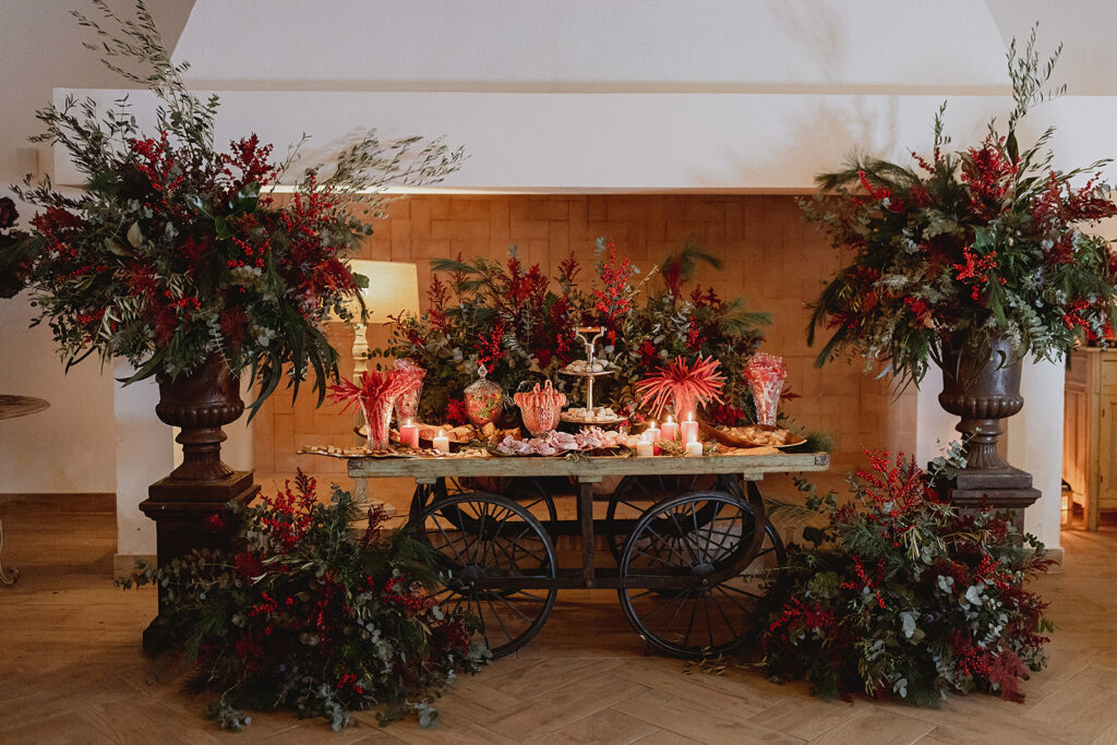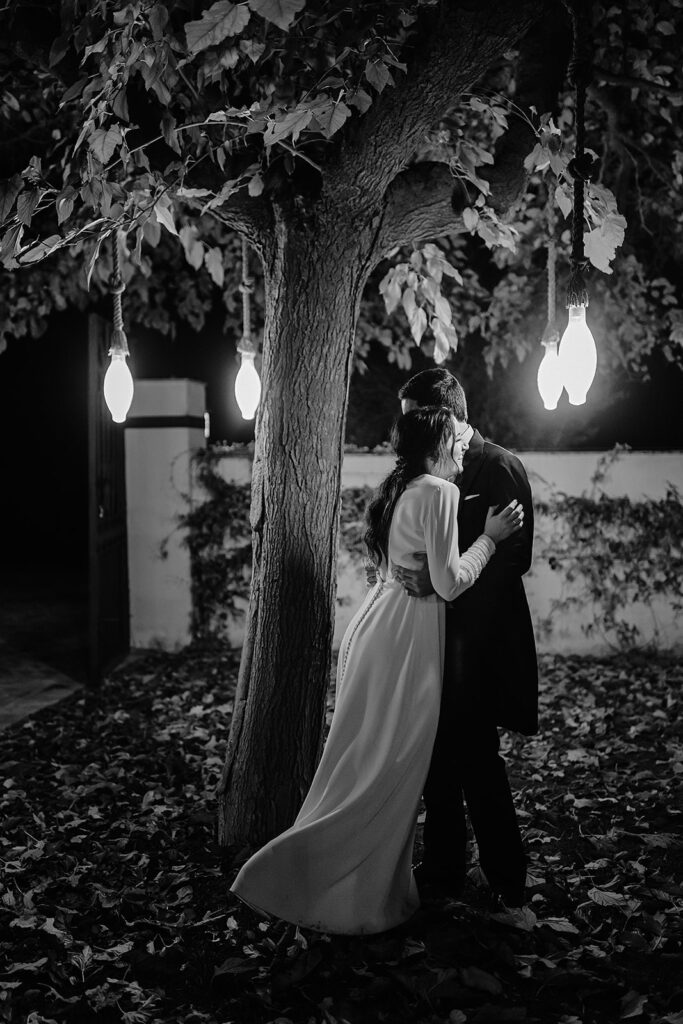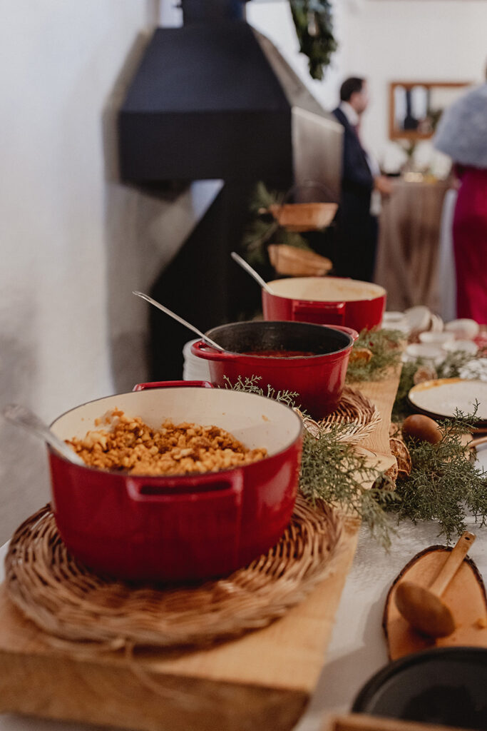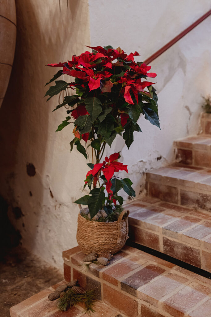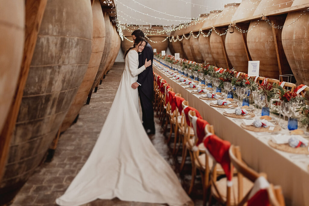 Javier e Isabel siempre habían soñado con una boda con temática navideña. Prepararon toda clase de detalles para su día B, empezando por decorar el árbol que preside nuestro zaguán en este tiempo mágico. La boda en Hacienda la Membrilleja de esta pareja sólo se puede imaginar a ritmo de canciones navideñas, cerca de una chimenea y con un beso bajo el muérdago. Isabel y Javier utilizaron casi todos los espacios cubiertos de nuestra finca. Aquí podéis ver otra disposición, en la que se utilizaron todos los espacios al aire libre, en la boda de Jess + Joseca.