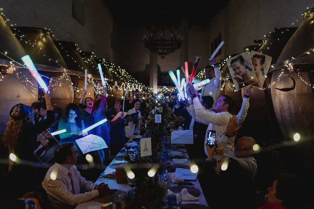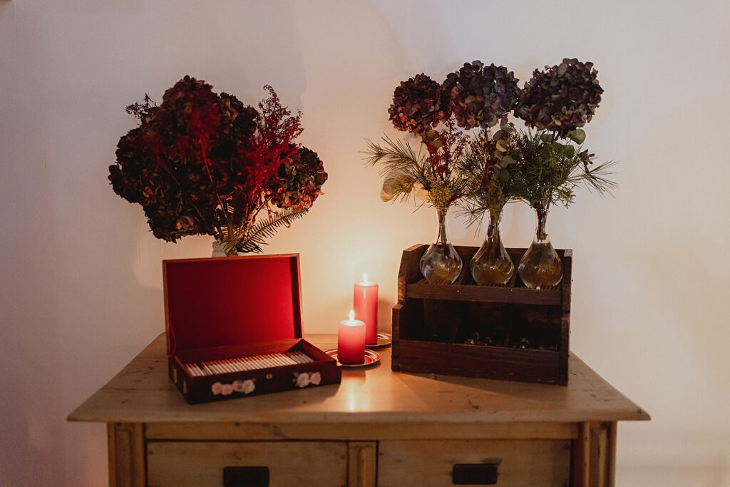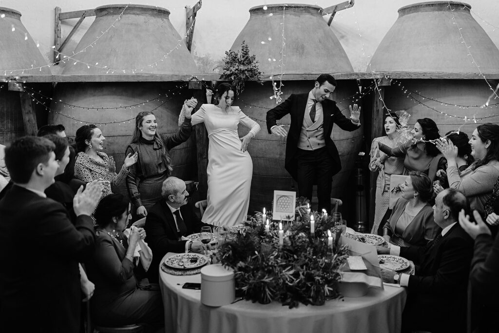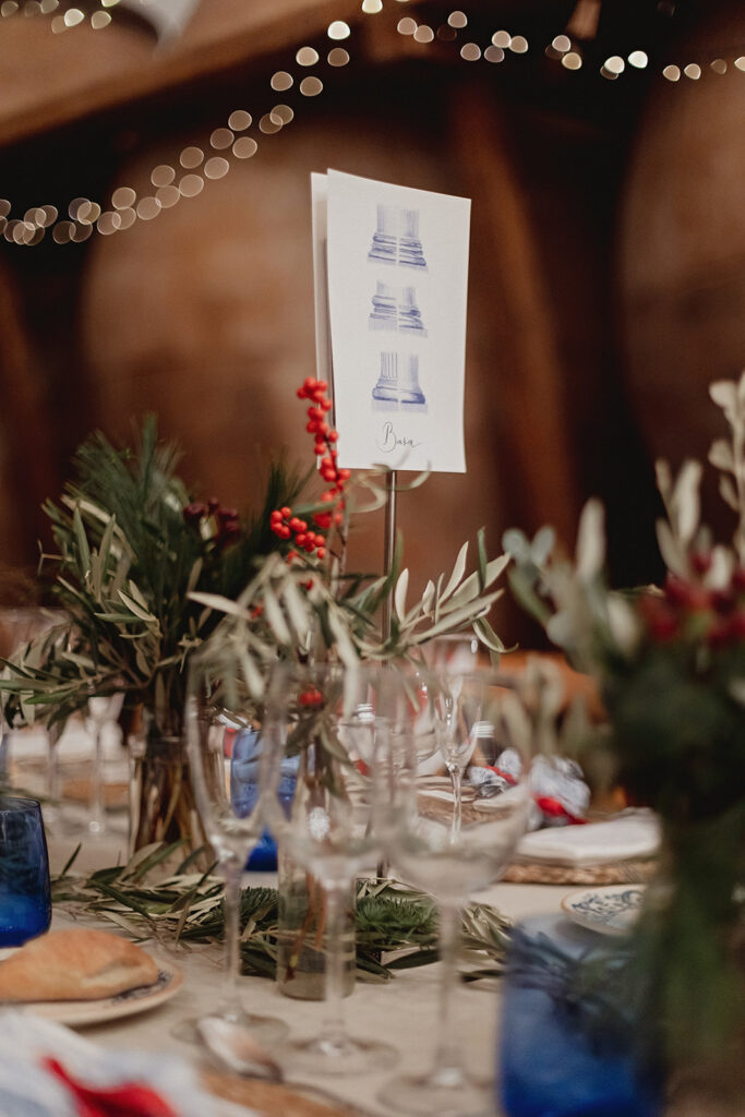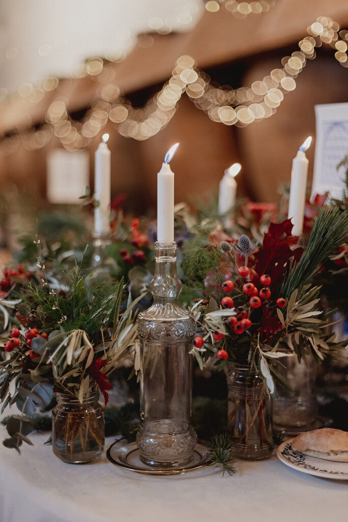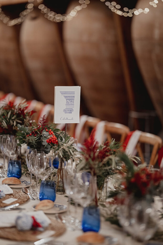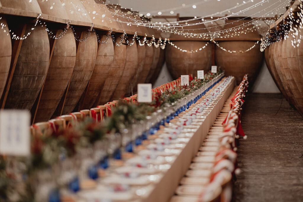Javier e Isabel siempre habían soñado con una boda con temática navideña. Prepararon toda clase de detalles para su día B, empezando por decorar el árbol que preside nuestro zaguán en este tiempo mágico. La boda en Hacienda la Membrilleja de esta pareja sólo se puede imaginar a ritmo de canciones navideñas, cerca de una chimenea y con un beso bajo el muérdago. Isabel y Javier utilizaron casi todos los espacios cubiertos de nuestra finca. Aquí podéis ver otra disposición, en la que se utilizaron todos los espacios al aire libre, en la boda de Jess + Joseca.