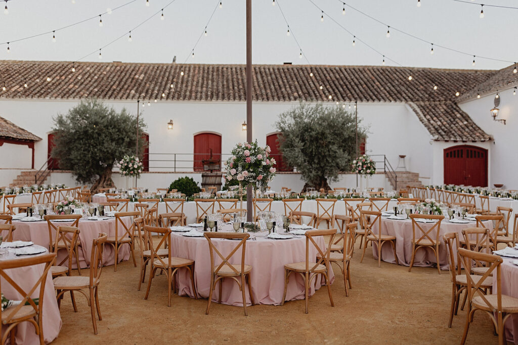 La boda de Joseca y Jess en una de esas noches de verano, en las que apetece estar al fresco, fue uno de esos eventos en los que la emoción se palpaba en el ambiente. La boda en la Hacienda la Membrilleja, con todos los espacios utilizados al aire libre hicieron las delicias de los familiares y amigos. Lo bueno de nuestra casa, es que podéis disponer de los espacios, para diseñar vuestra boda como siempre habíais soñado. Aquí podéis ver otros espacios utilizados para una boda en una noche de verano, en la boda de Juan + María.
